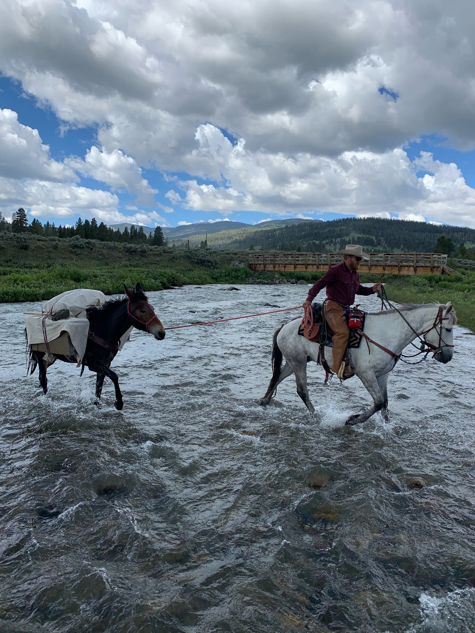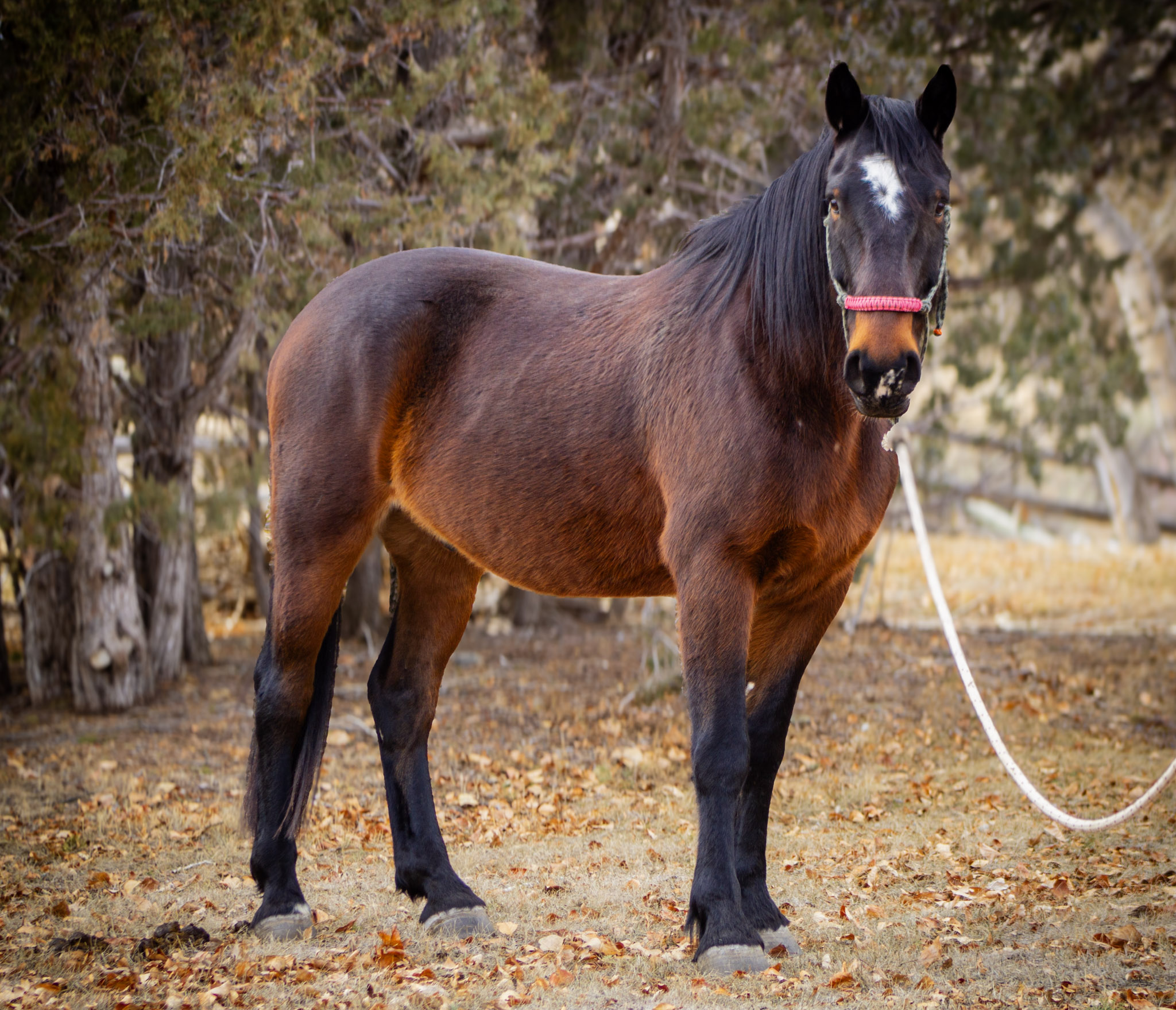 Uh-Oh is the definition of a family horse. Exceptionally well-rounded, he has been roped off of, used to gather cattle, and ridden hundreds of miles in the backcountry leading pack strings through demanding terrain. With his long stride, steady mind, and generous nature, he consistently takes care of his rider, even in the most challenging conditions. He loads and trailers easily, stands tied patiently, is excellent with his feet, and has spent countless nights on a highline or hobbled. He has kindly partnered with many beginner riders, offering nothing but steadiness, patience, and heart. We truly cannot say enough about this horse.