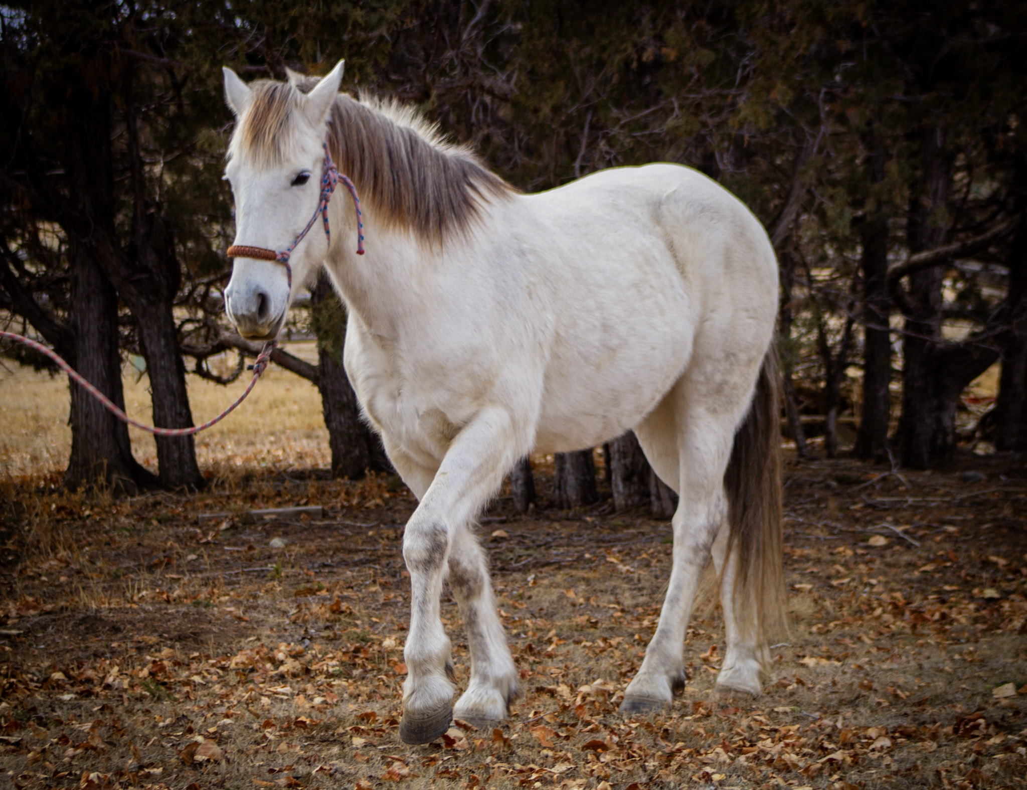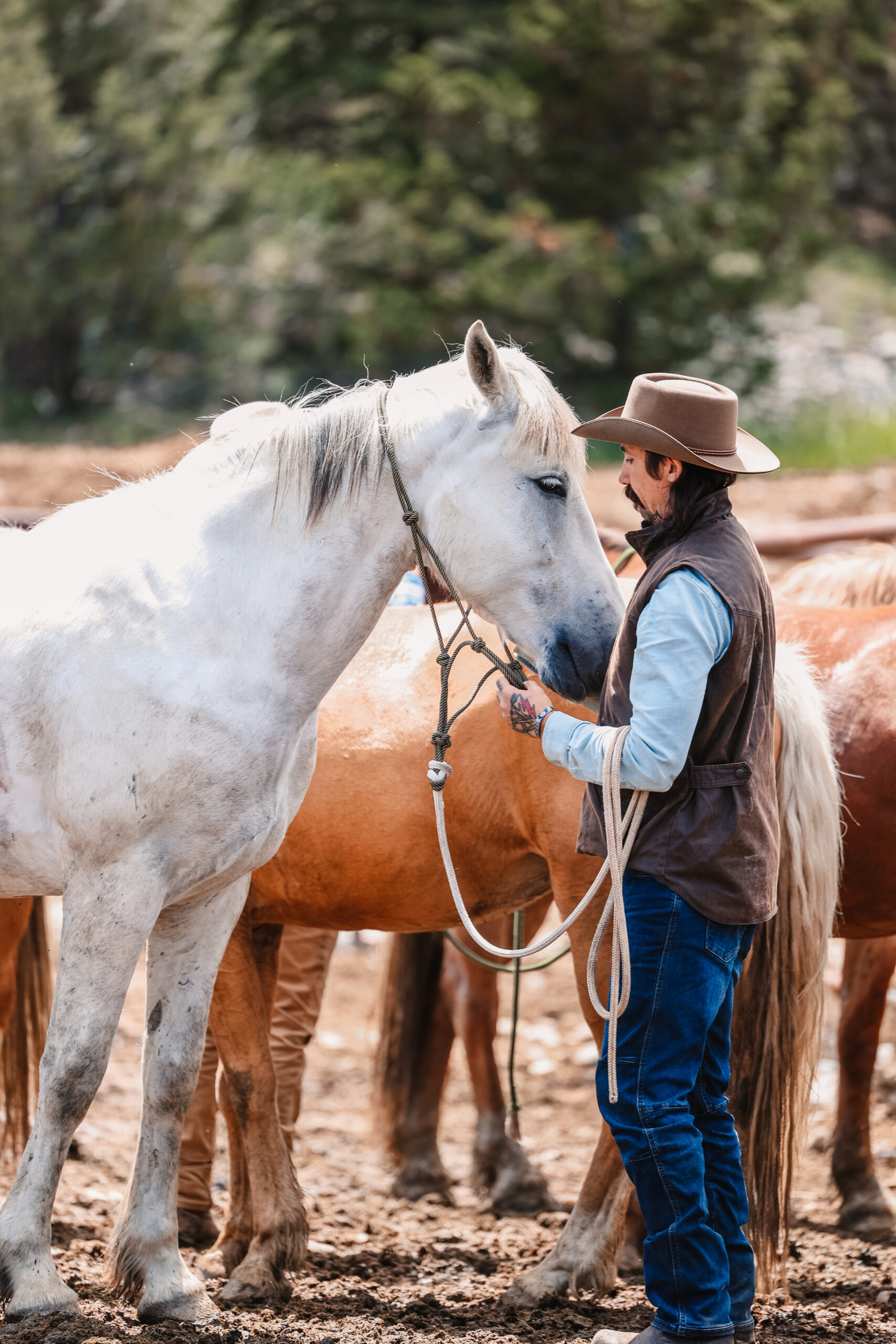 Audi is 100% sound. He is equally comfortable in the arena or wilderness and has been used extensively to rope, work cows, lead pack strings, and trail ride in the roughest Montana backcountry. He does well on a highline or when hobbled, loads easily, leads quietly, and will stand tied patiently for hours. He is a mustang with a big personality and asks for trust before giving himself fully to any partnership. For this reason, we recommend an experienced horse home. He has learned a few clever tricks over the years to avoid work with beginner riders, but in the hands of someone with experience, he is an exceptional and capable mount.