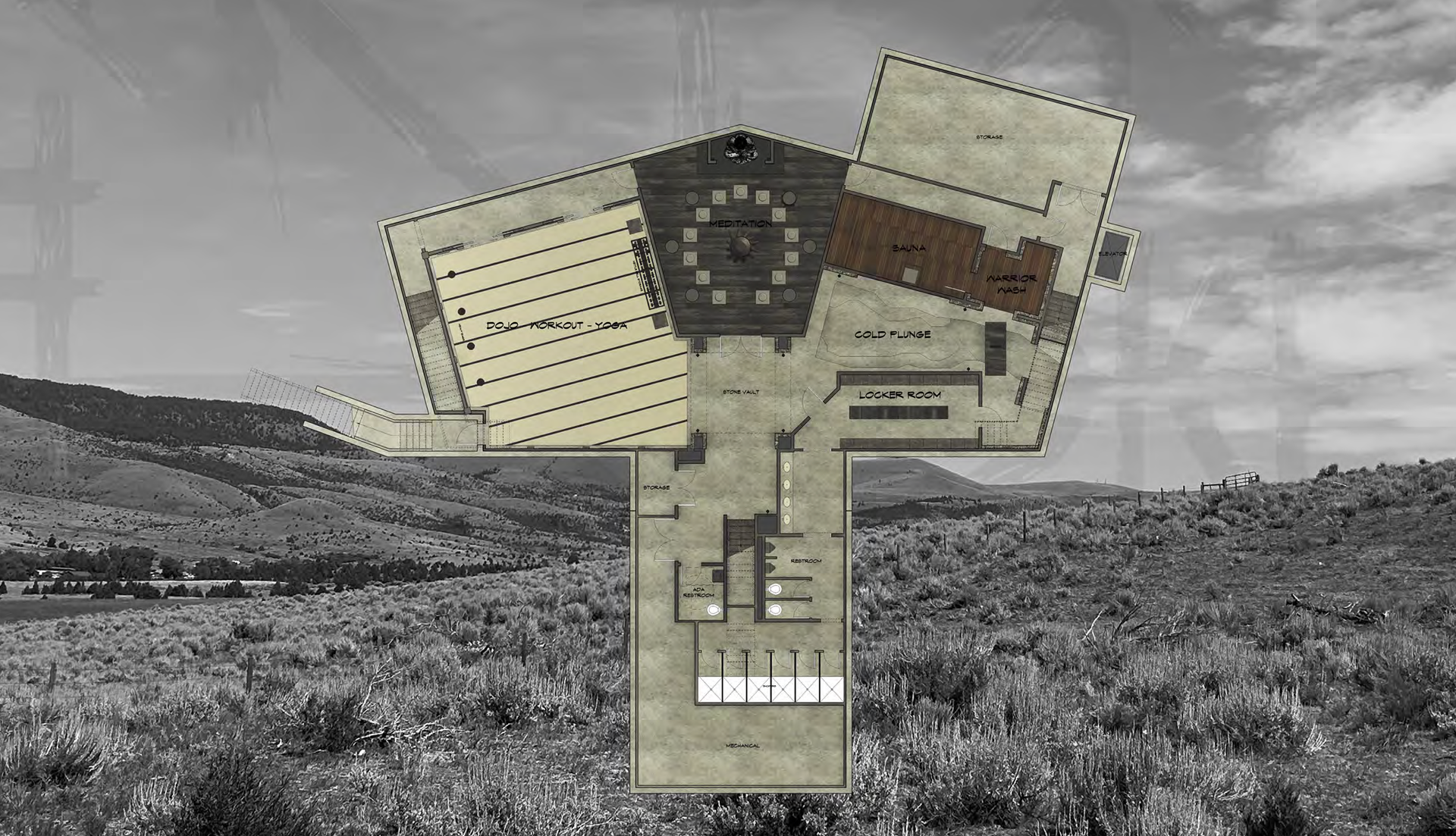 Its architecture is a journey: cold as awakening, heat as purification, study as remembrance, discipline as embodied ethics, and the central hall as the council fire. Moving through the building is moving through struggle, insight, and integration.